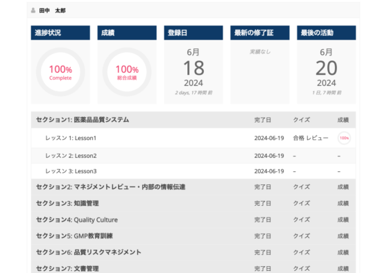 同じアカウントでログインすれば、過去の受講履歴を継承して利用が可能です。